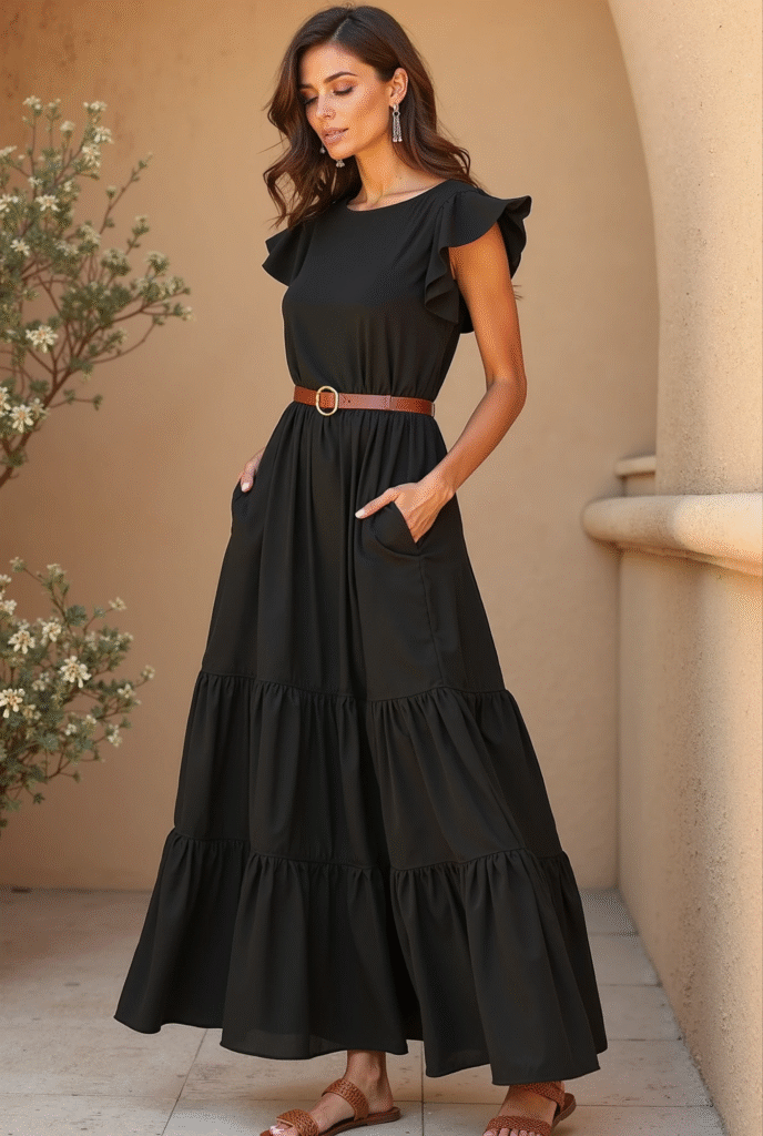 If “effortless and elegant” had a dress code, this would be it. The Tiered Flutter Sleeve Midi Dress is soft, breathable, and made to make you feel polished without trying too hard.